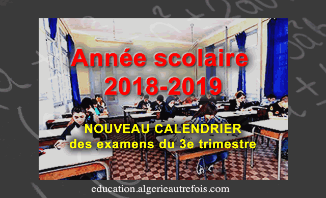 Un nouveau calendrier des examens pour le troisième trimestre de l'année scolaire en cours, vient d'être dévoilé par le ministère de l'Education nationale publié sur sa page facebook officielle, et ce, pour les trois paliers de l'éducation.
